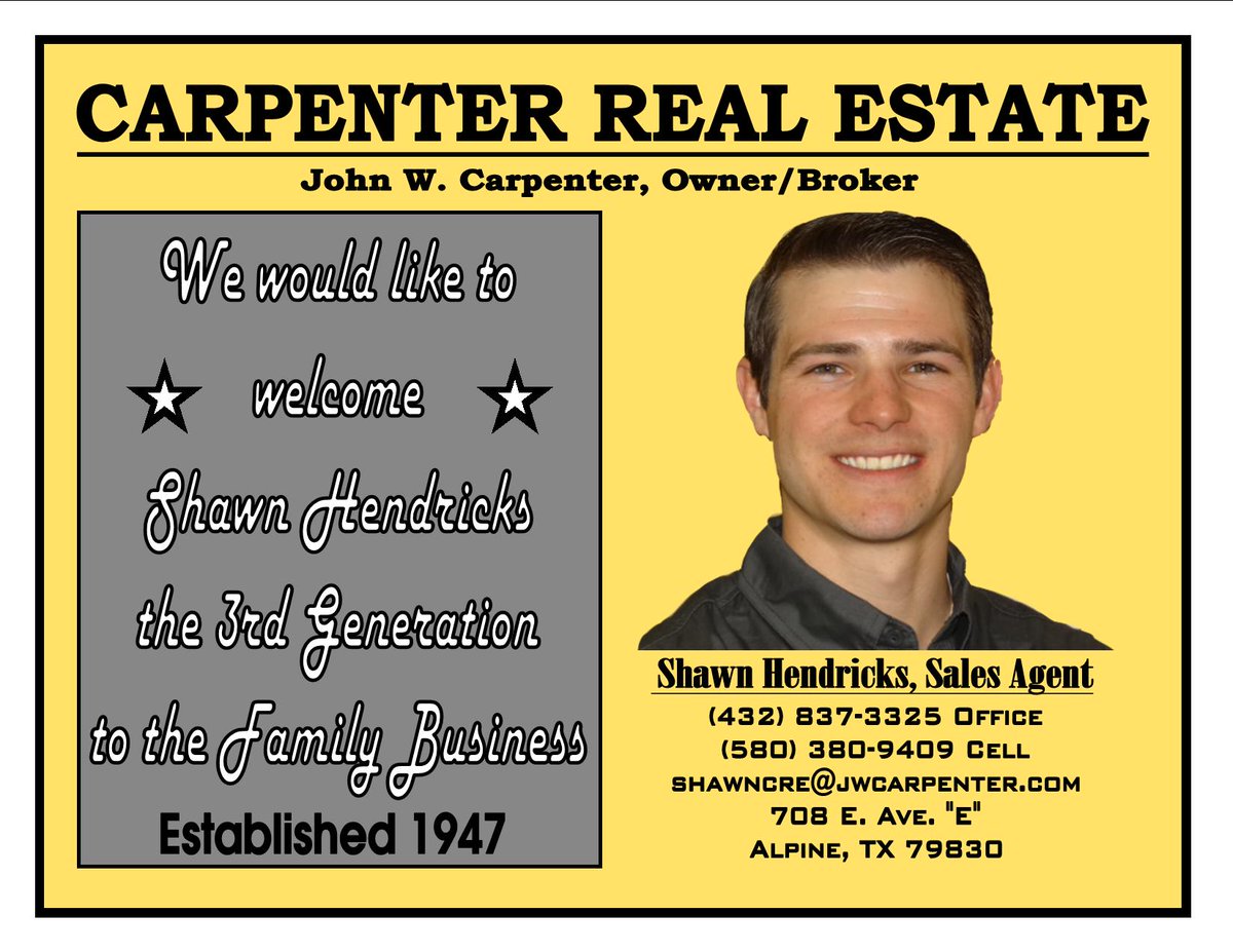See reviews photos directions phone numbers and more for Carpenter Real Estate locations in Alpine TX. Jw carpenter realty alpine texas Verified 9 days ago. Carpenter Real Estate is a family-owned and operated business that specializes in residential properties commercial properties and ranches for three generations.